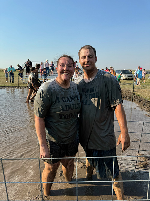 Emily Carda (Athletic Trainer) and her boyfriend Derek are the Slope County Fair 2024 Pig Wrestling Champions!