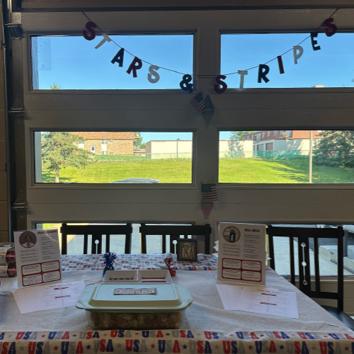 On July 1st, we held a Fourth of July-themed potluck to celebrate our summer interns: Jillian Bechtold (OT) and Remington Schatz (PT).