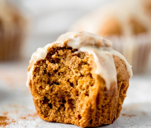 6. To make the salted honey glaze: in a small bowl, mix together the powdered sugar, honey and melted butter until smooth. Add a pinch of sea salt. Glaze should be thick. If it’s too thick add 1 teaspoon of milk. Spoon about ½ tablespoon glaze onto each muffin. Enjoy! Makes 12.