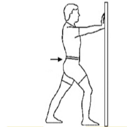 -Stand facing wall, hands on wall.