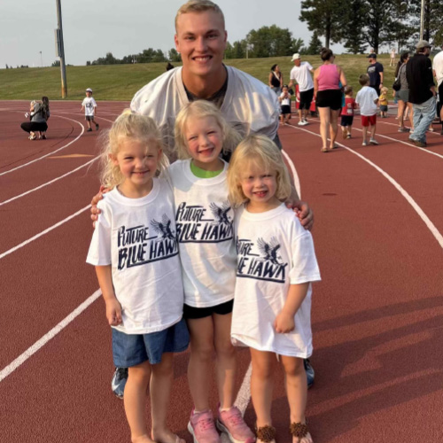 Doug Jilek’s son, Nathaniel Jilek, recently participated in the “Meet the Hawks” event at Dickinson State University. This event gives DSU athletes the chance to give back to their young fans. Nathaniel spent the evening signing autographs and tossing footballs with future Blue Hawks, including his nieces—aspiring volleyball athletes Aria, Eden, and Ivy.
